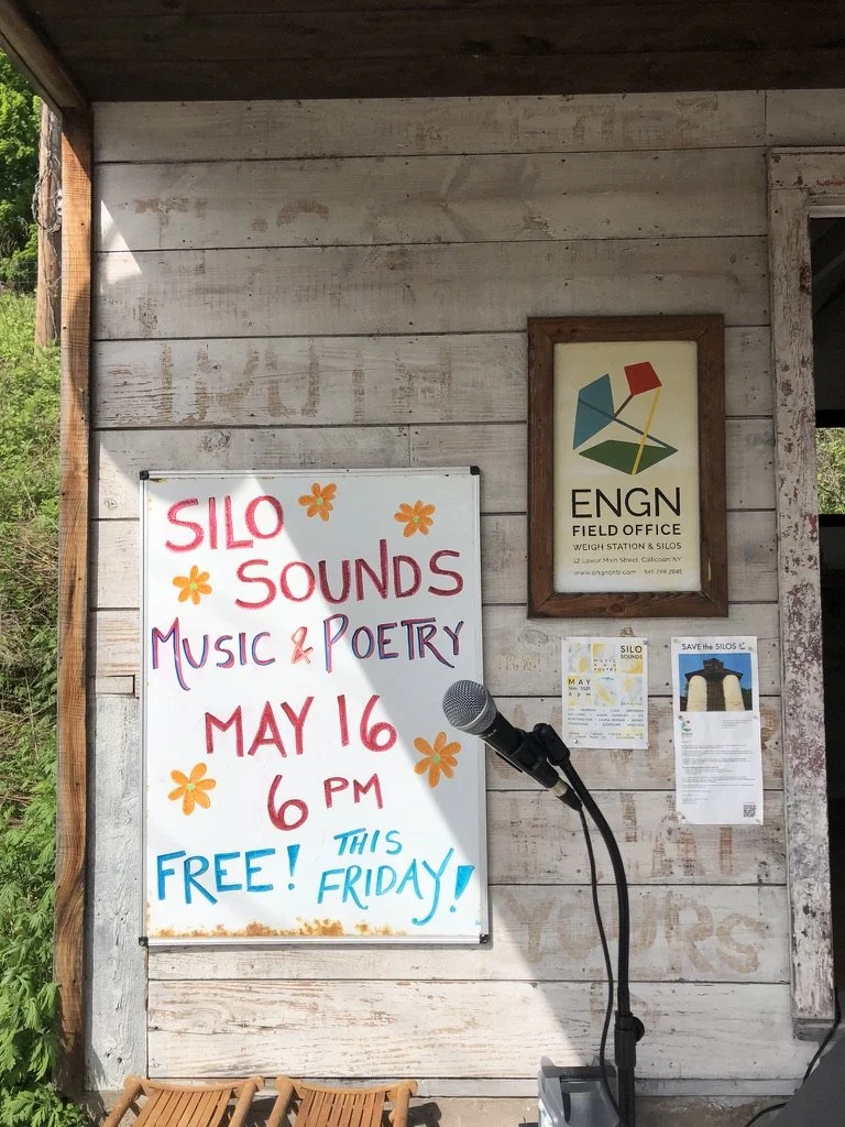 This past May, we had our inaugural “Silo Sounds” event to celebrate completing the first phase of renovations on the silos. We gathered for a night of words and sounds, with local poets, writers, musicians, and friends. A neighbor fired up the wood stove, offering fresh pizza and bread. There were reflections on grief, calls to protect each other and our environment––there was a group of people listening to each other.